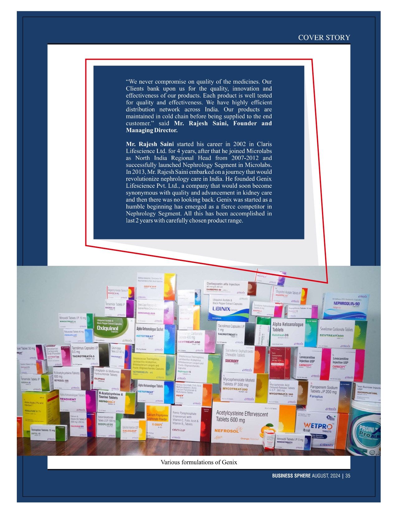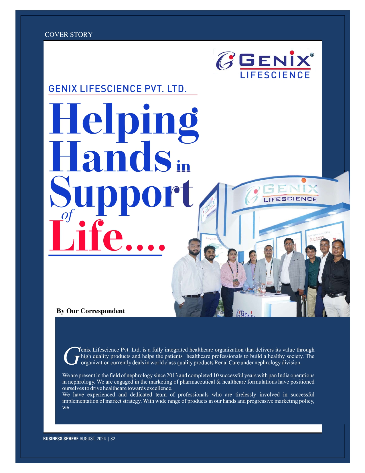 Genix Lifescience Pvt Ltd is a fully integrated healthcare organization that delivers its value through high quality products and helps the patients & healthcare professionals to build a healthy society. The organization currently deals in world class quality products Renal Care under nephrology division. We are present in the field of nephrology since 2013 and completed four successful years with pan India operations in nephrology